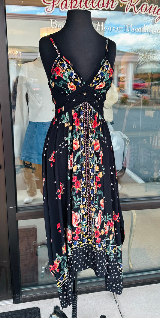 Current Air Black Mini Dress With Lace Sleeve Detail
