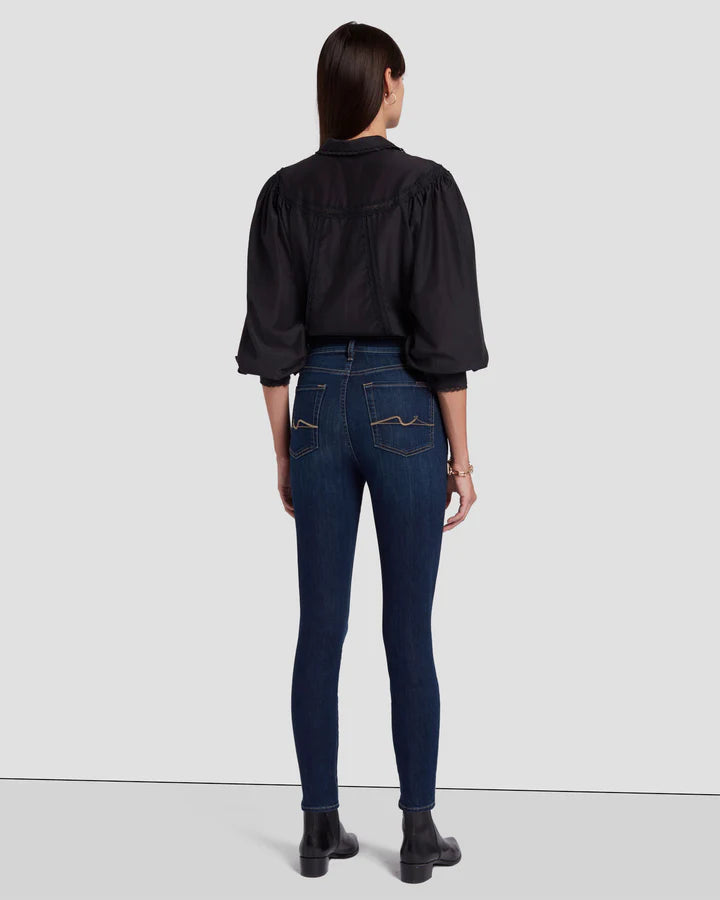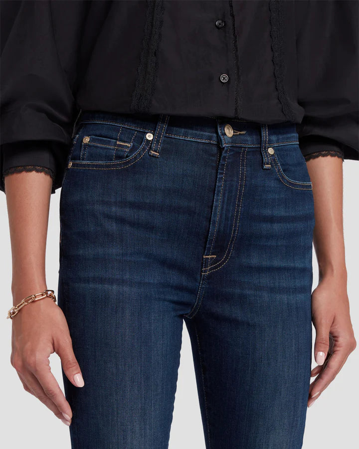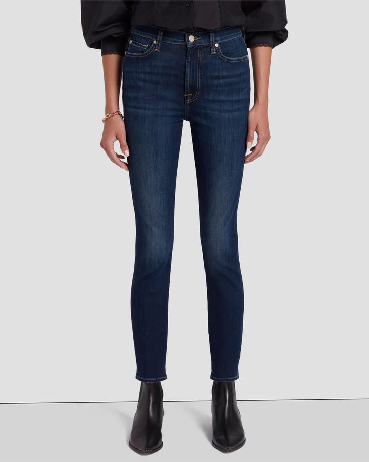 Our favorite high-waisted skinny fit that crops ever so slightly at the ankles. This versatile dark blue wash is cut from our signature stretch denim for all day comfort. Pair with a loose button-up to contrast the streamlined silhouette.