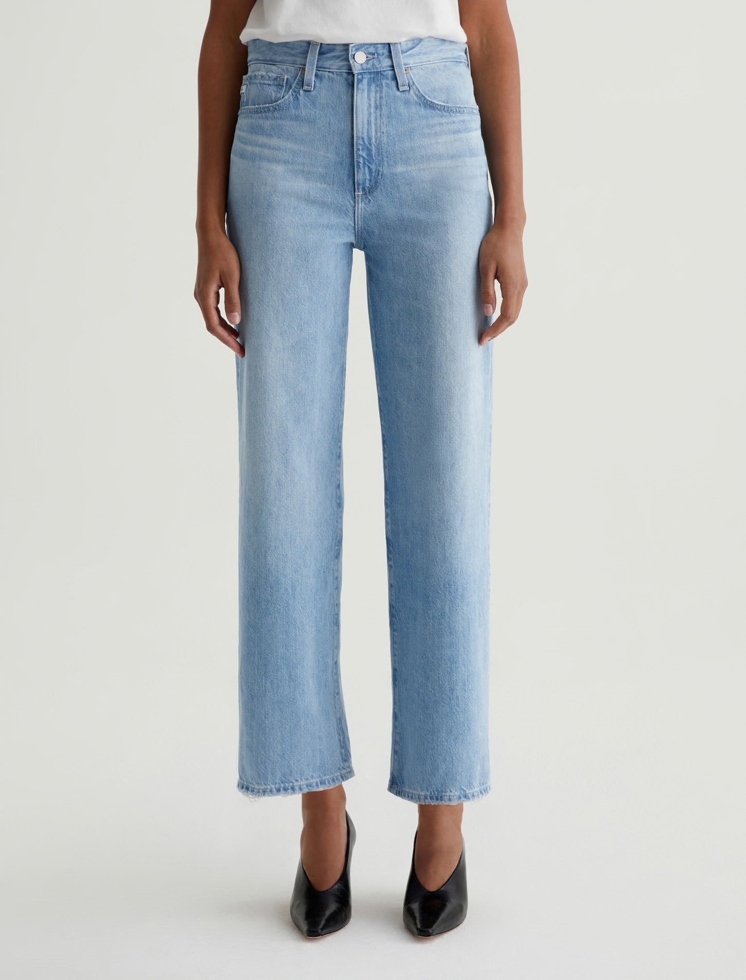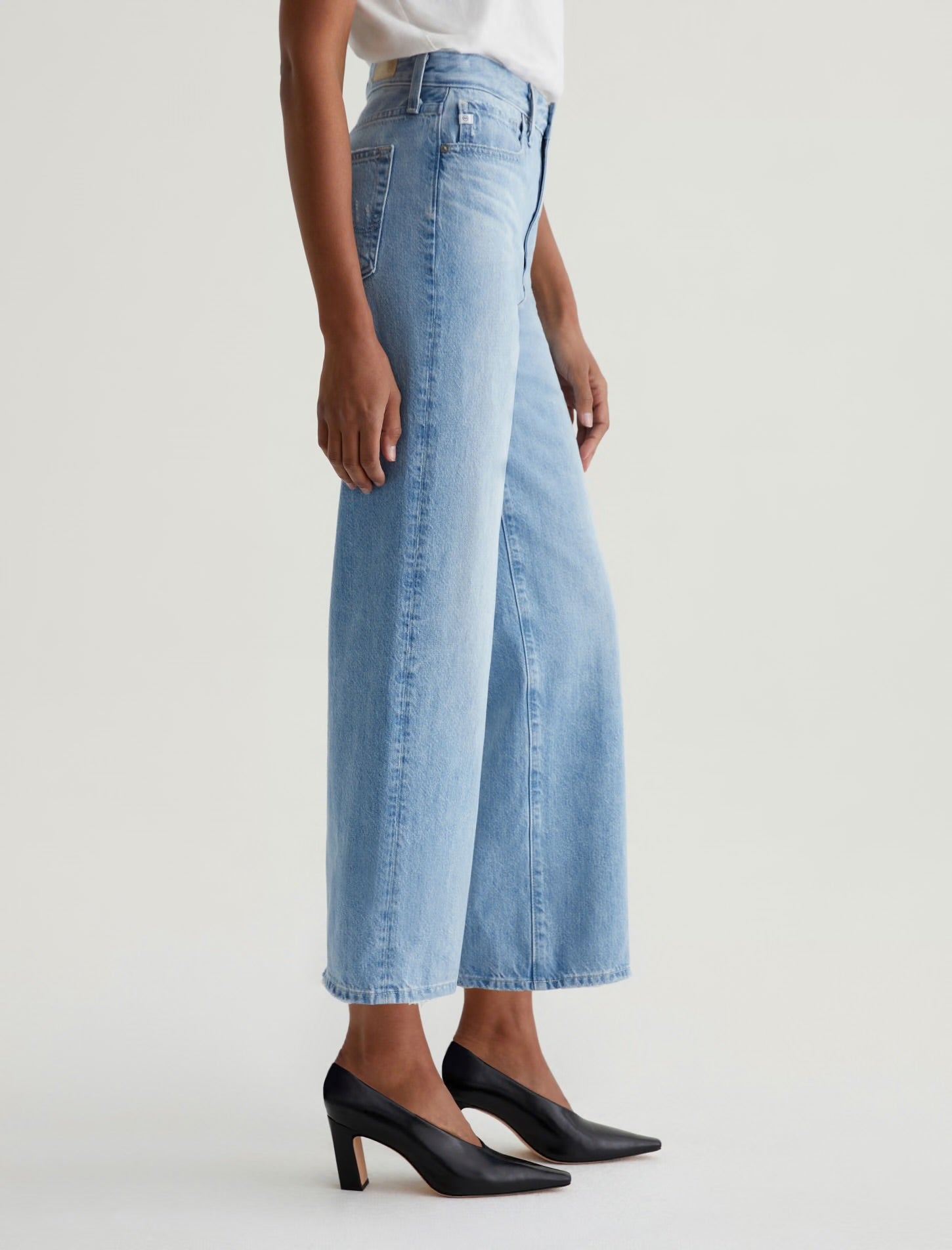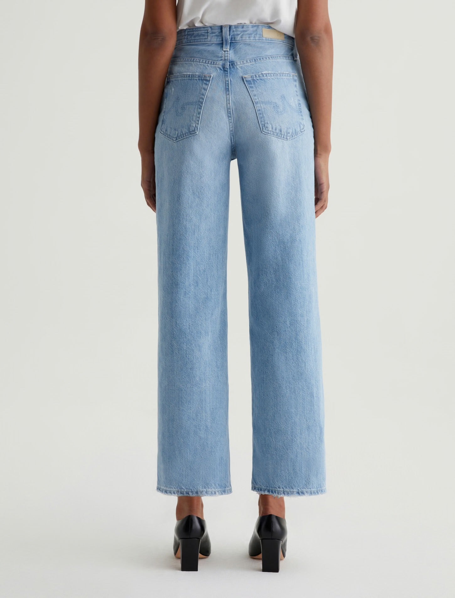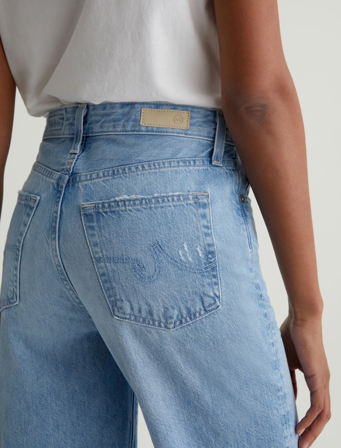 Our Kora wide-leg jeans have an ultra-high rise and a loose, easy fit through the legs. This pair is crafted from 13 oz. Sioux Rigid Denim made from 100% cotton. It's done in a light blue wash with a sun-bleached fade and worn pocket edges.