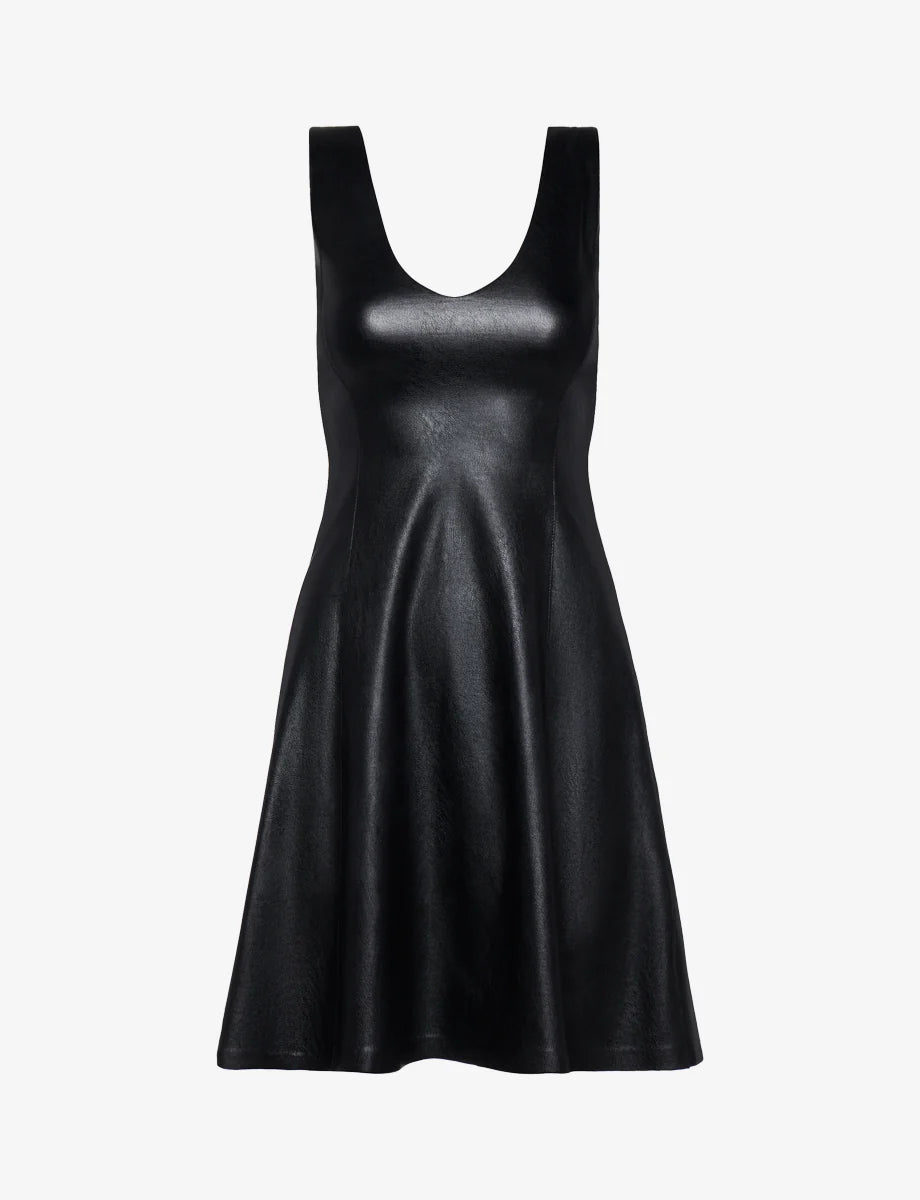 Commando's Faux Leather V-Neck Founder Dress is made with our best selling Faux Leather fabric that looks and feels like the real thing. This faux leather v-neck dress has so much versatility that it will take you from the business day to happy hour, with a dash of faux leather edge.