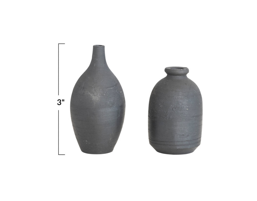 2-1/2"H - 3"H Decorative Handmade Terra-cotta Mini Vase, Black Chalkboard Finish, 2 Styles