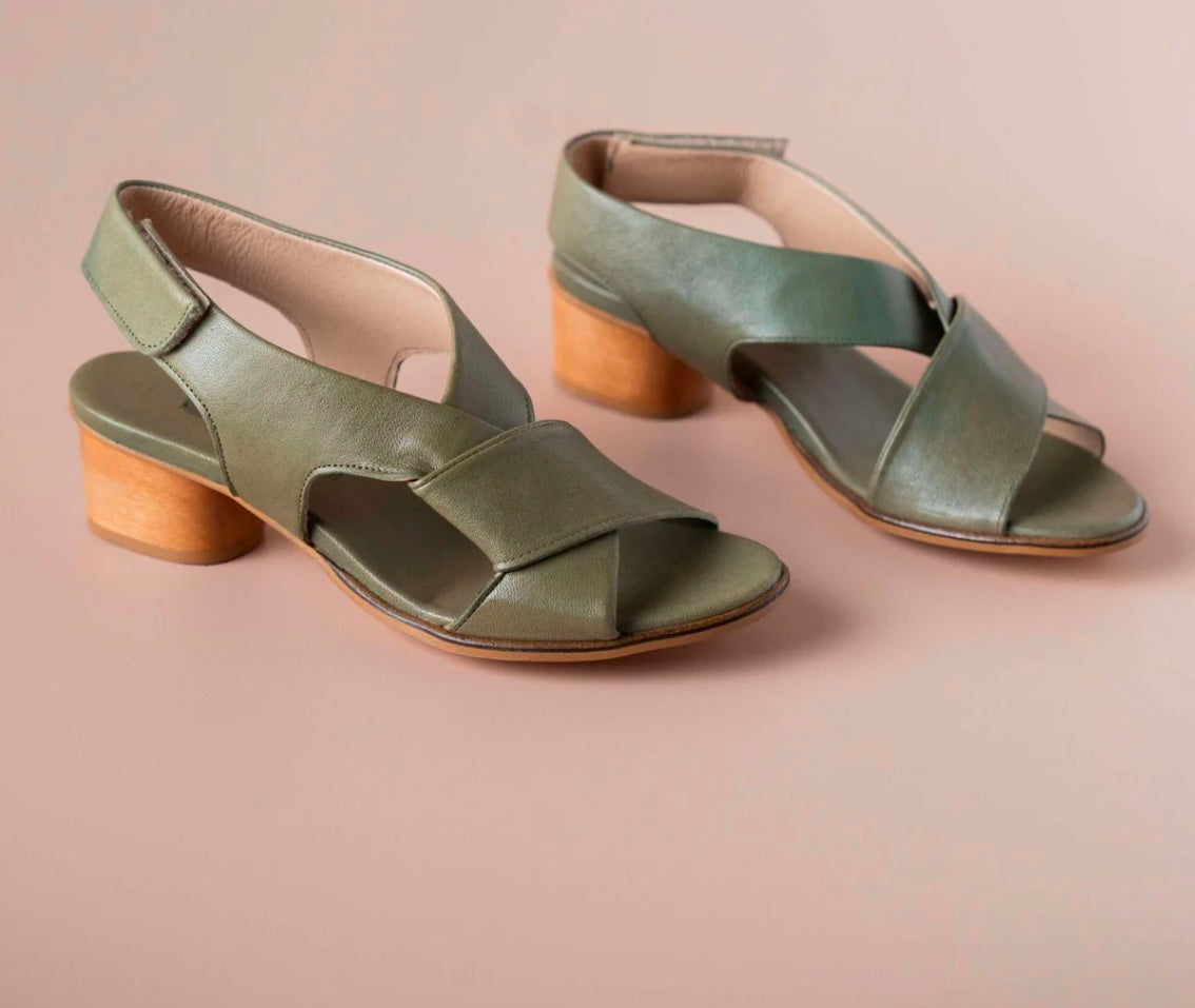 Eric Michael's mid-heel city sandal delights with it's lusciously soft leather and unique wrapped upper
