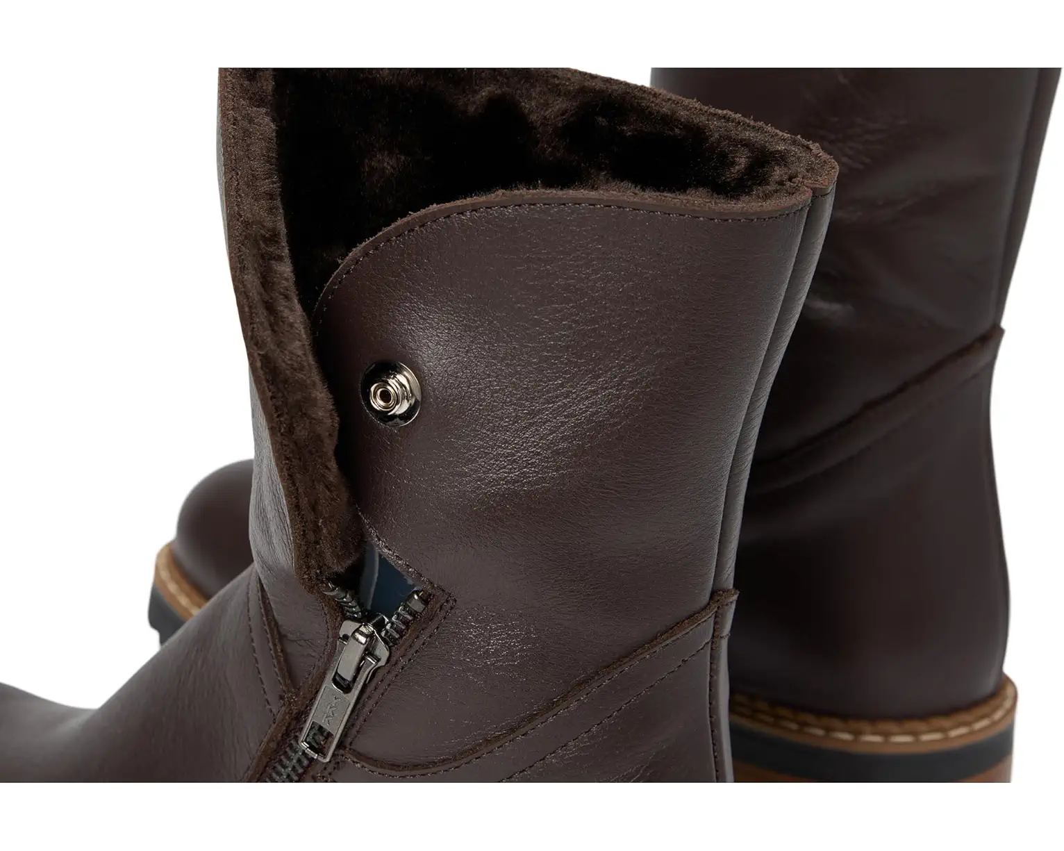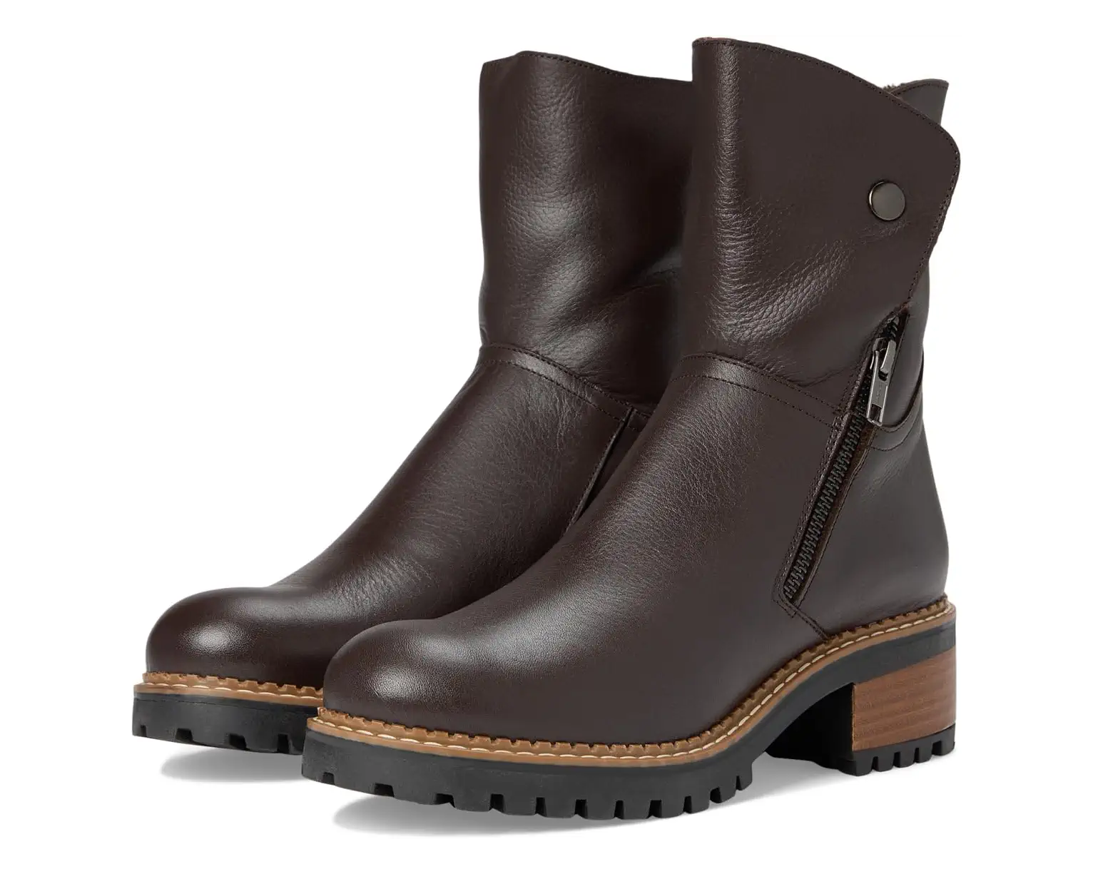 Step out in style wearing the Eric Michael® Pelham boots. Pelham is one of our favorites, it can be worn completely zipped up or folded over, and you'll love the soft faux fur lining. Made with sleek leather upper and foam insole, these ankle-high boots are a must-have for the colder months. The round toe design and block heels keep you on-trend wherever you go.