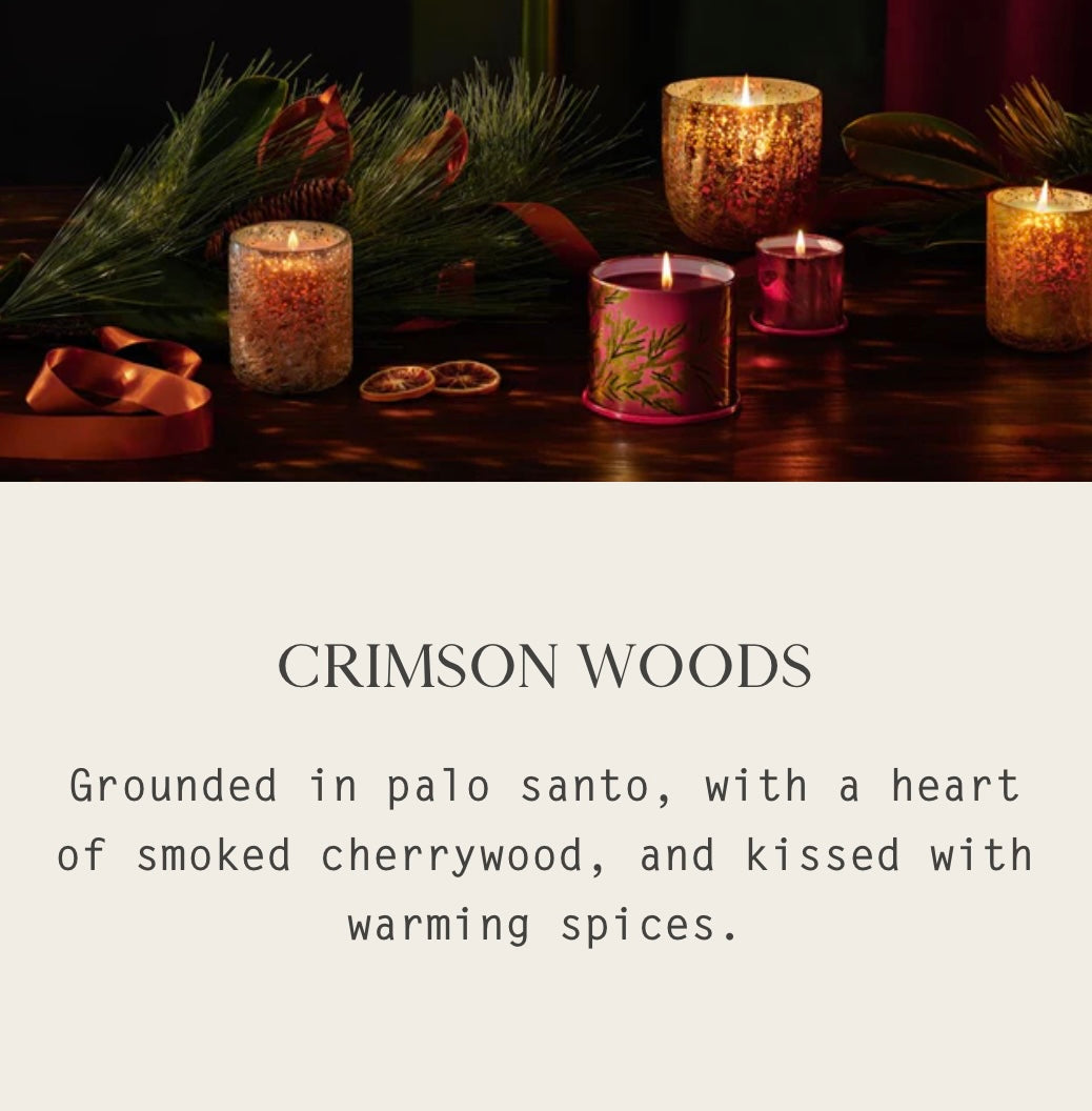 Grounded in palo santo, with a heart of smoked cherrywood, and kissed with warming spices.