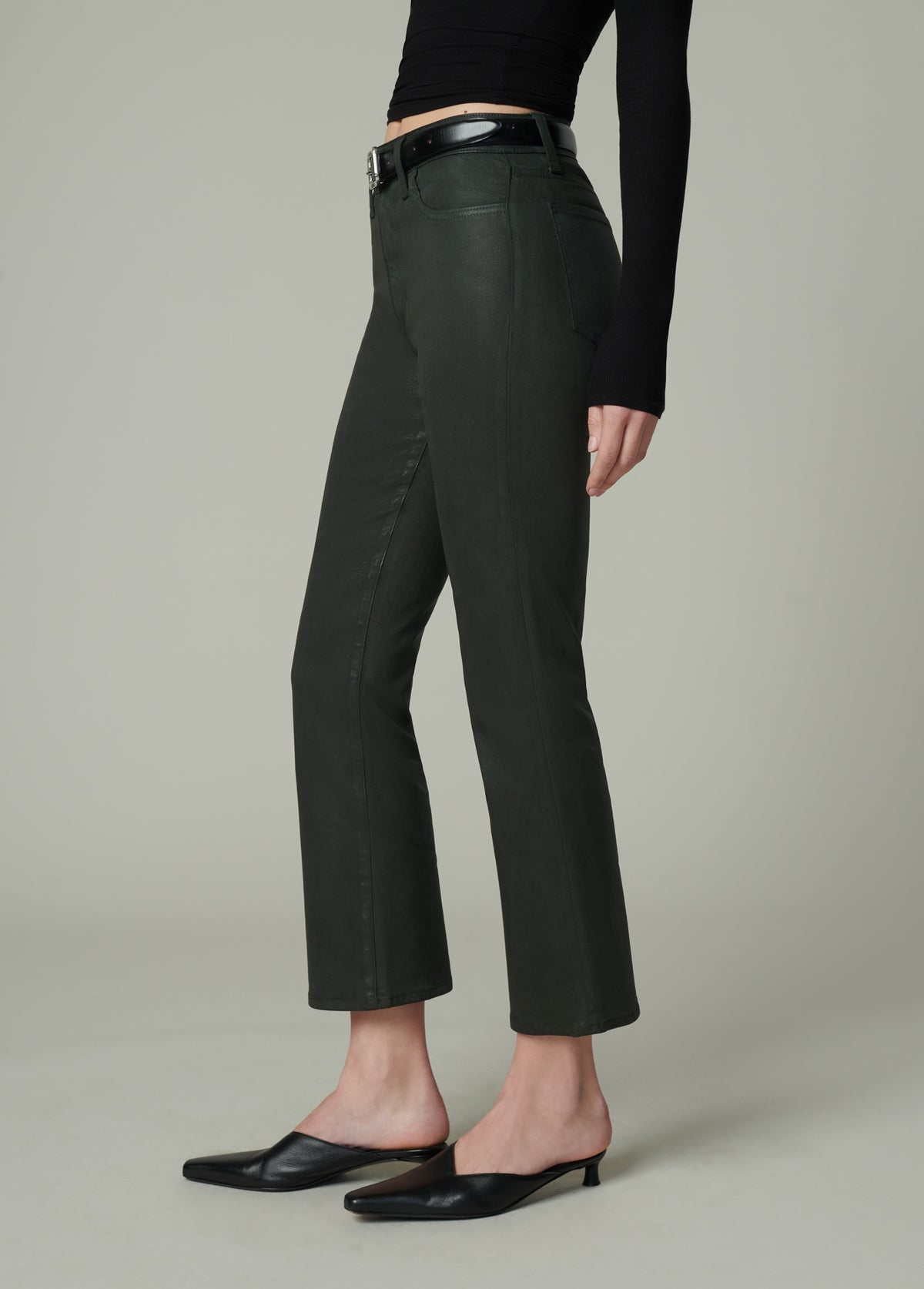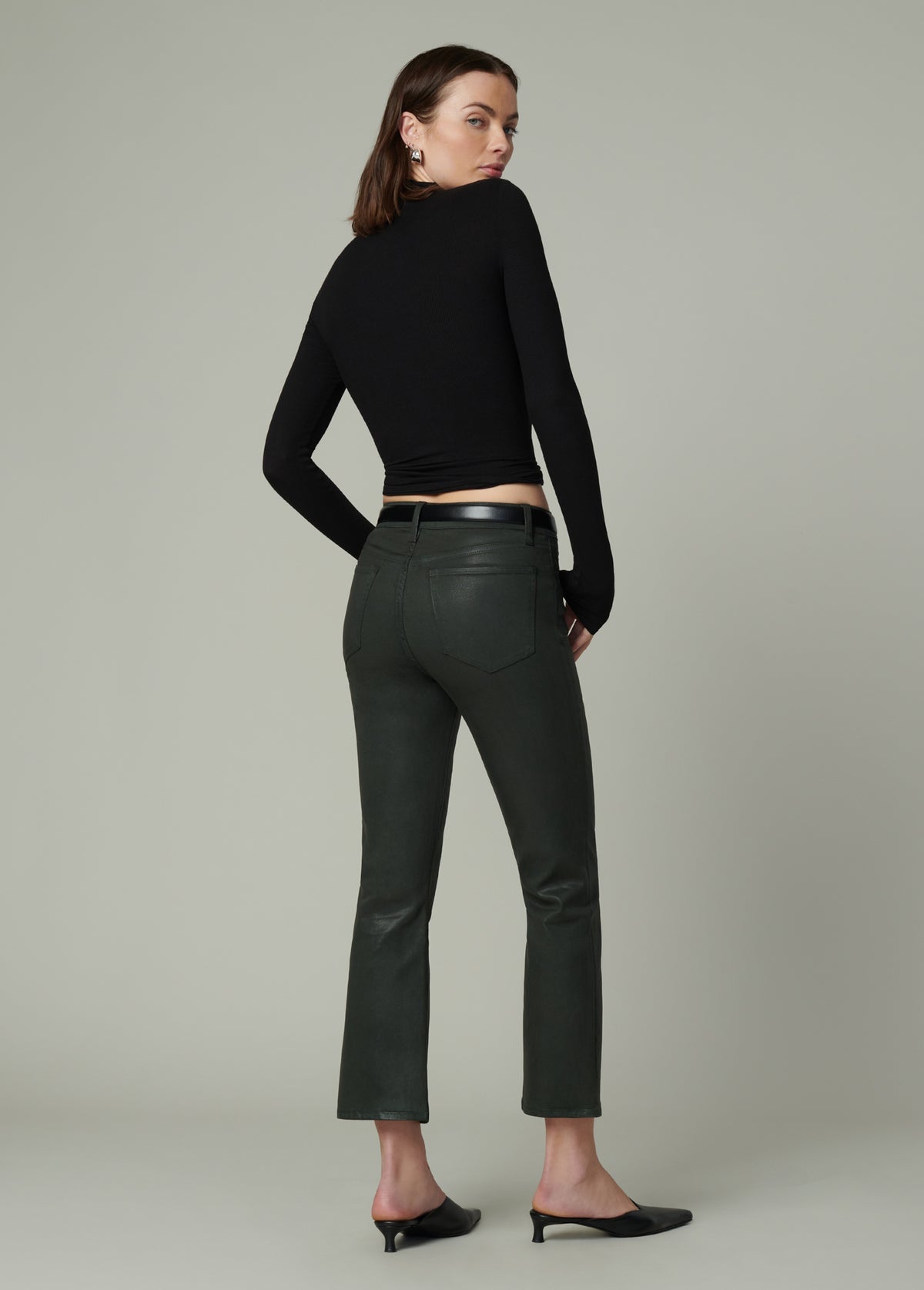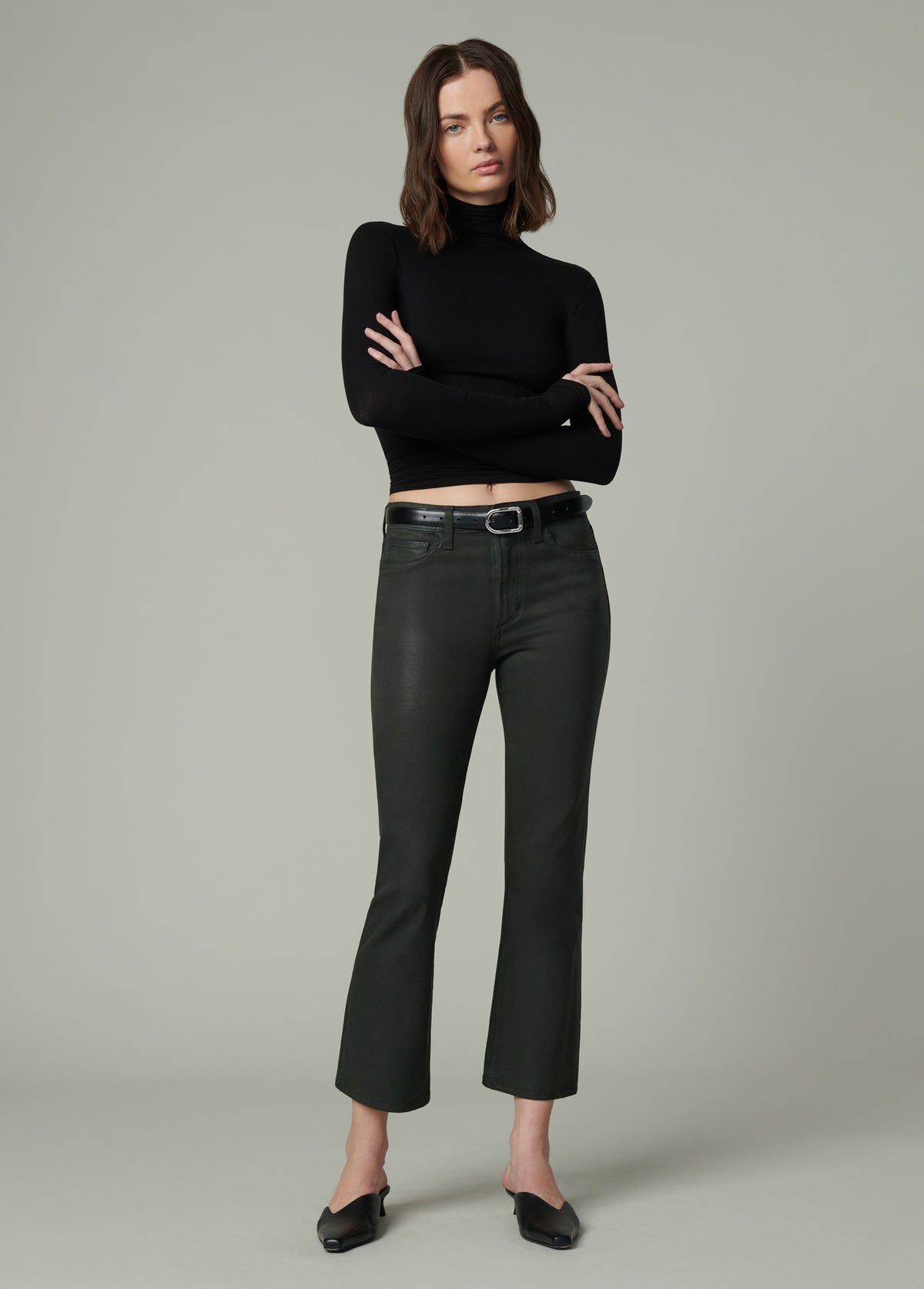 Slim fit through the waist, hips and thigh with a high rise and subtle bootcut that hits above the ankle.