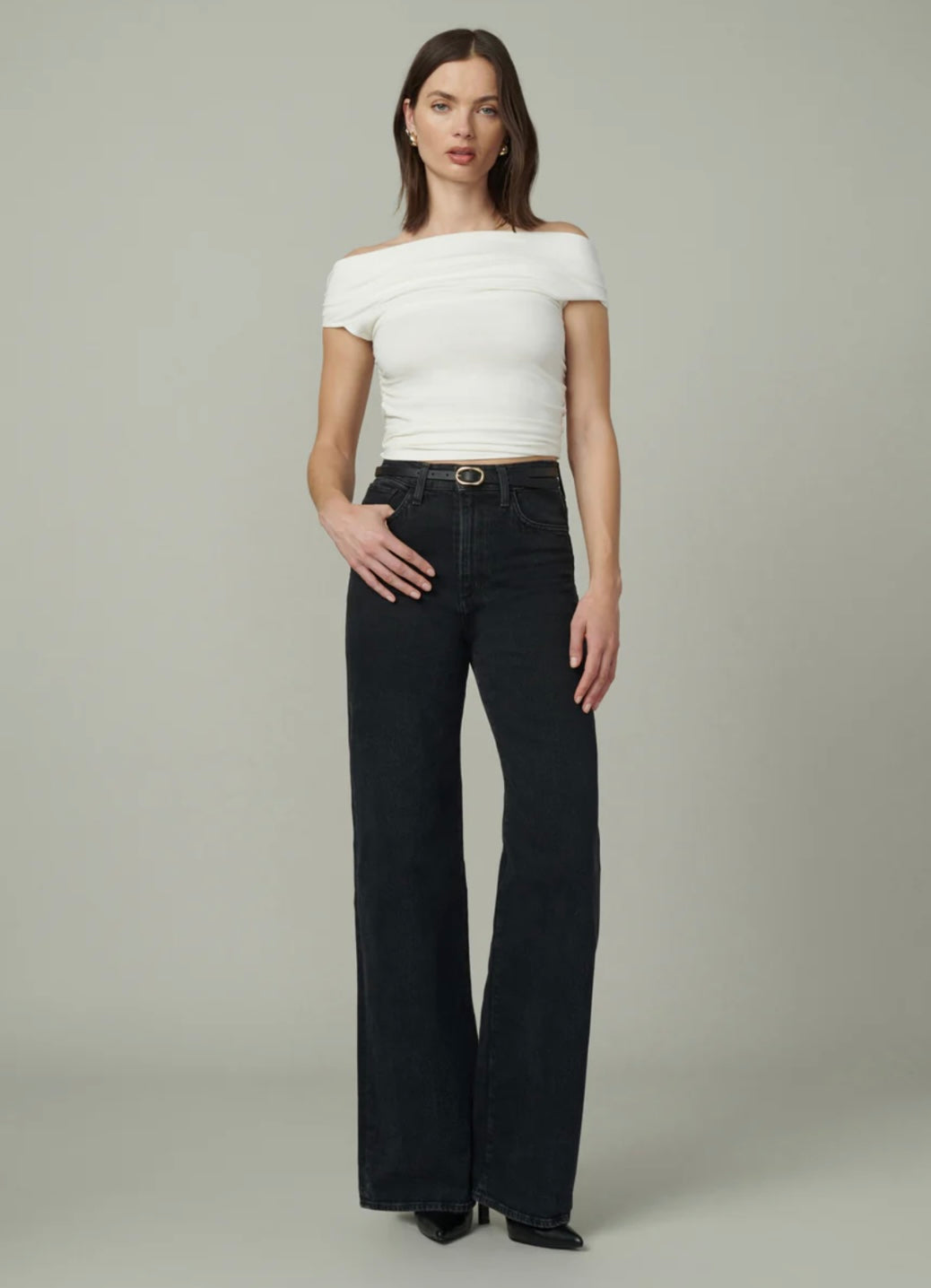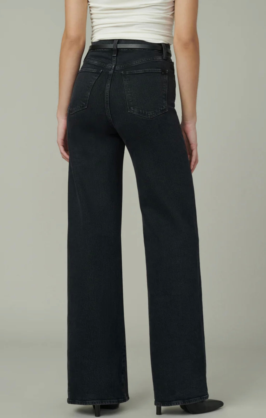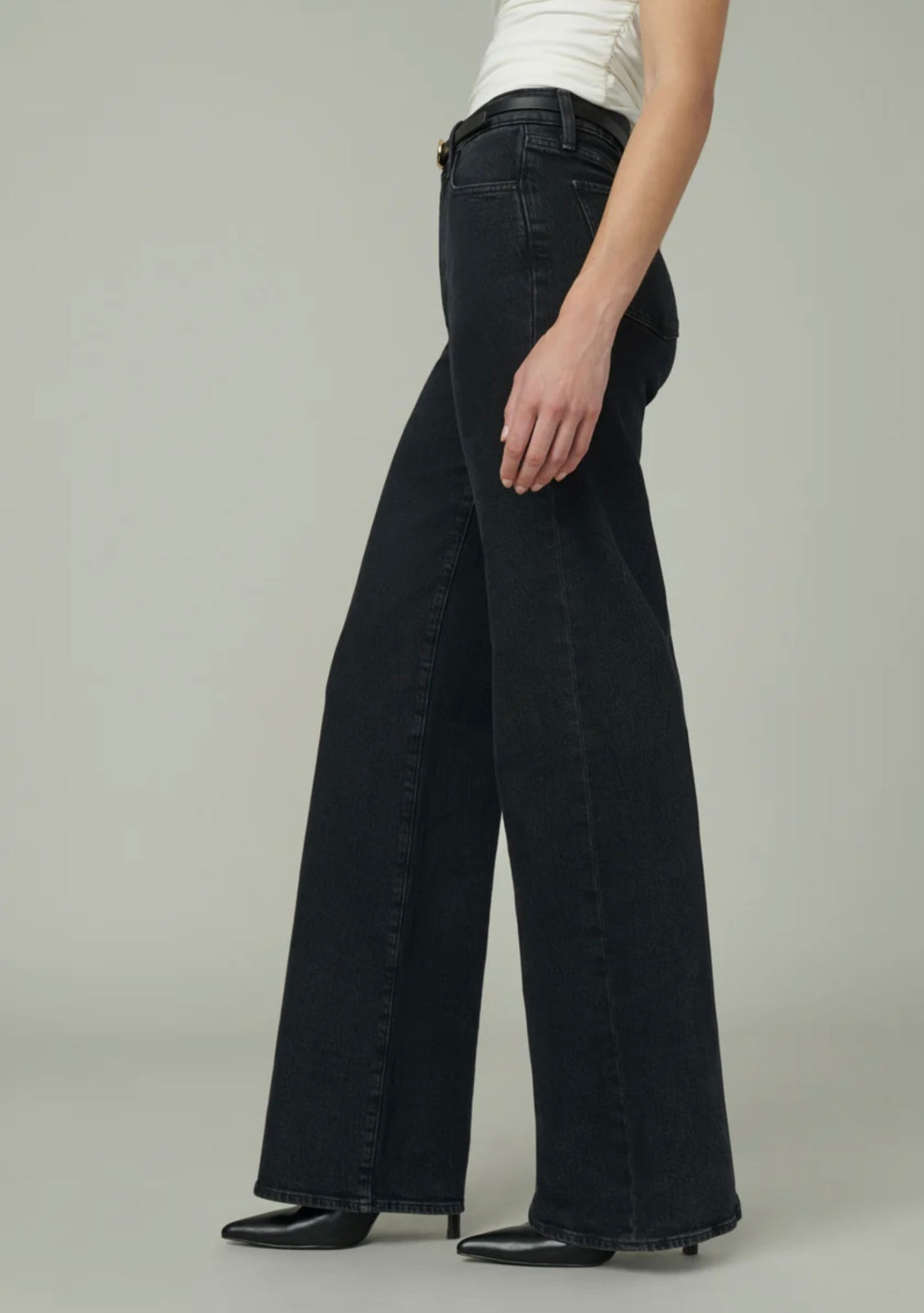Slim fit through the waist and hips with a high rise and a full-length wide leg.