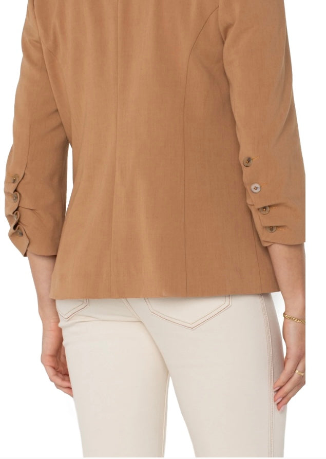 Feel cool and sophisticated in our fitted blazer featuring ruched sleeves. Whether you're heading to a business meeting or opting for a casual look with denim, this versatile piece elevates your style.