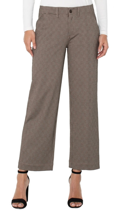 Liverpool Wide Leg Crop Trouser Camel Sand Stripe