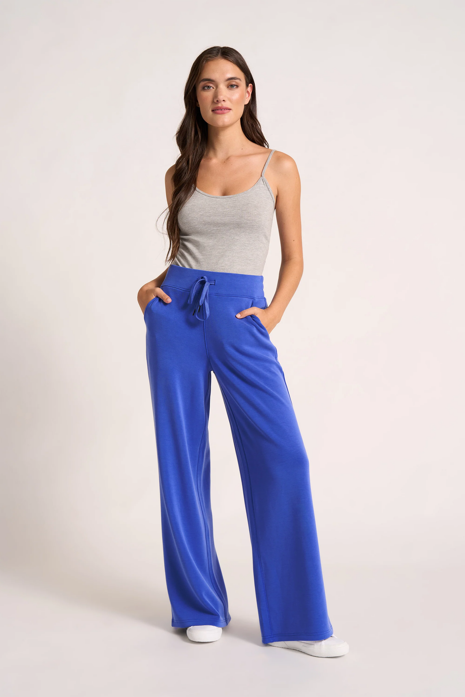 A modern classic with a luxe touch, the Saylor Wide Leg Pant delivers effortless style and all-day comfort. Designed with a high-rise drawstring waist and a fluid, wide-leg silhouette, it moves with ease while maintaining a polished look. Crafted from our ultra-smooth signature sandwashed modal fabric, it offers the perfect balance of stretch and structure. Whether you're catching a flight or meeting for coffee, its breathable, lightweight feel makes it a natural choice. Pair it with the Farrah Half Zip for a refined yet relaxed set