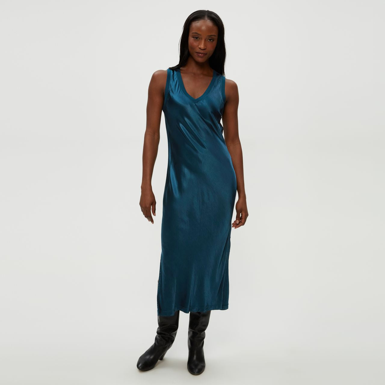 The Randi is a luxe midi dress is cut on the bias and crafted from our made-in-LA satin for a beautiful drape. Perfect for layering under your favorite sweater, or over your favorite turtleneck.