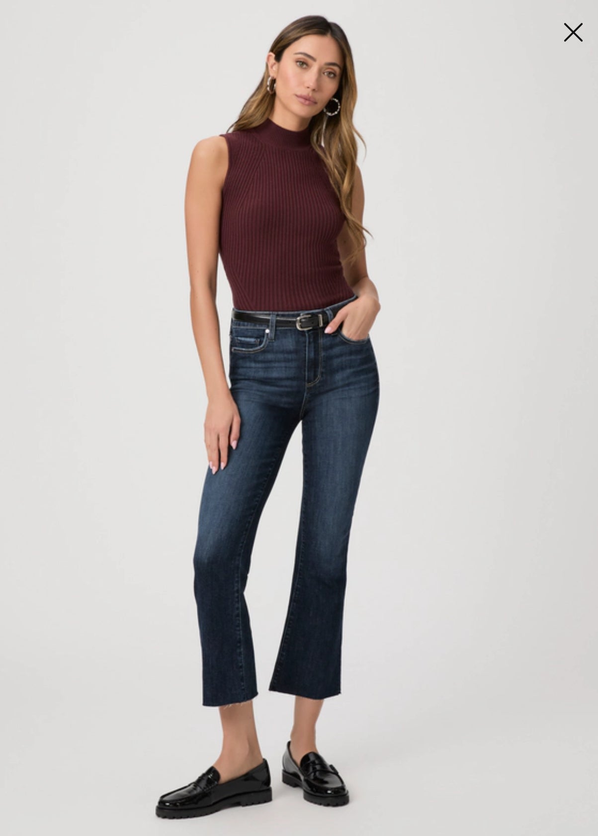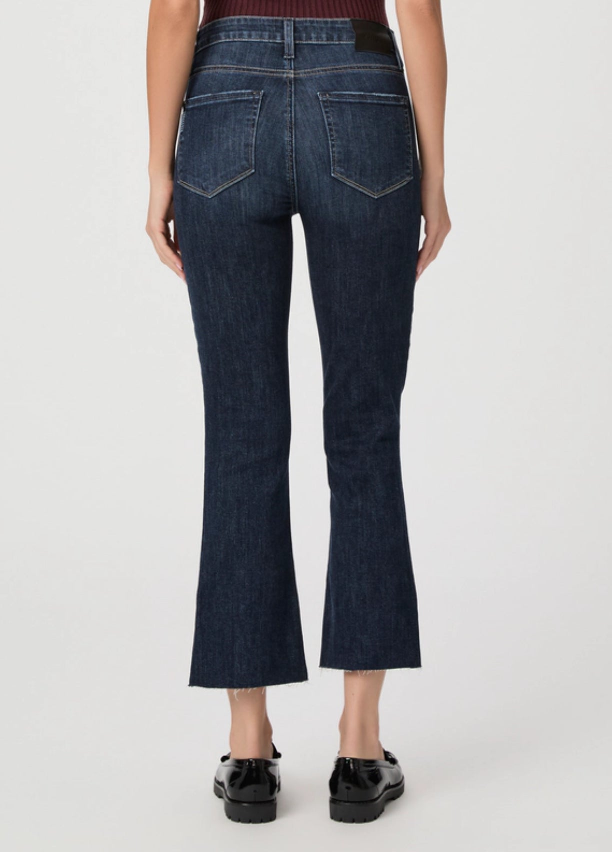 This high-rise cropped flare is slim through the hip and thigh with a kick flare below the knee that finishes above the ankle. Cut from our TRANSCEND VINTAGE denim in a timeless vintage-inspired dark wash with lived-in details and a raw hem, this pair has the look of authentic vintage denim but is incredibly comfortable with plenty of stretch and recovery.
