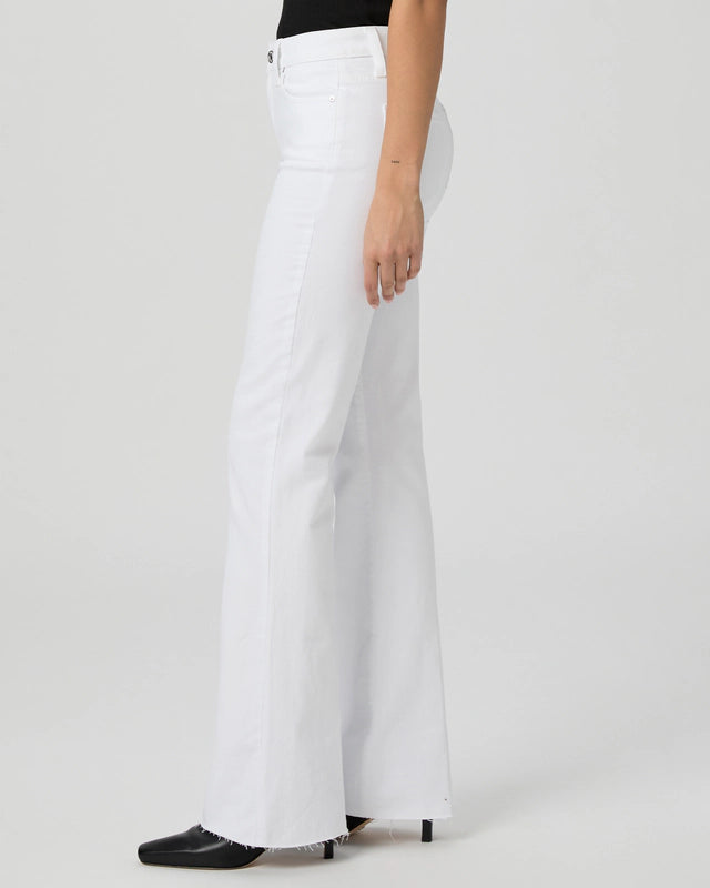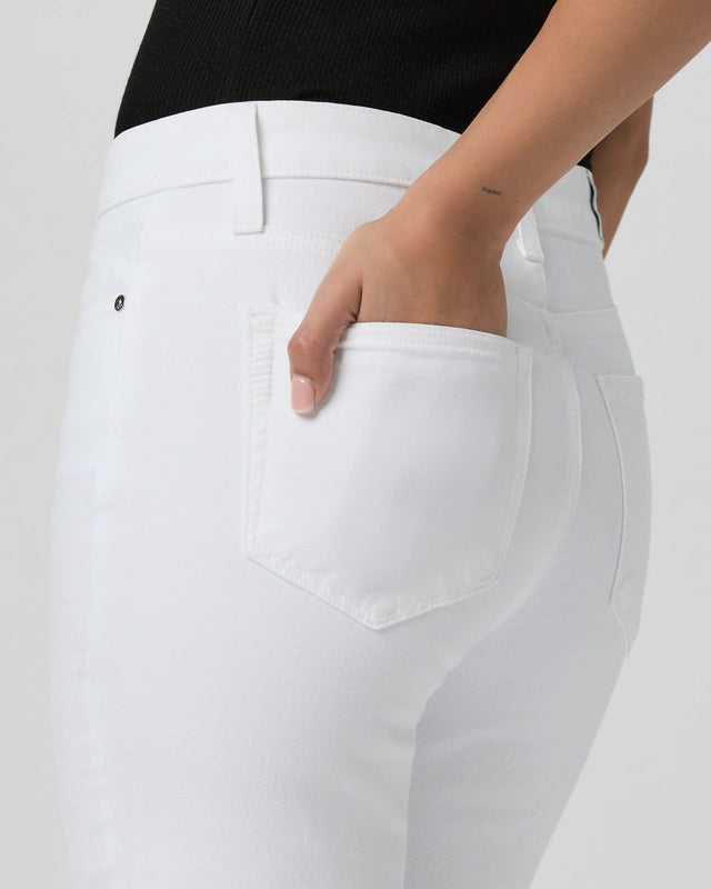 The High Rise Laurel Canyon is a vintage PAIGE style that has made a big comeback. This high-rise bootcut silhouette has a slightly shorter 32" inseam and comes in a crisp white with a raw hem. We designed this in the perfect white fabric that holds you in, is never see-through and gives plenty of coverage so you can feel your most confident.