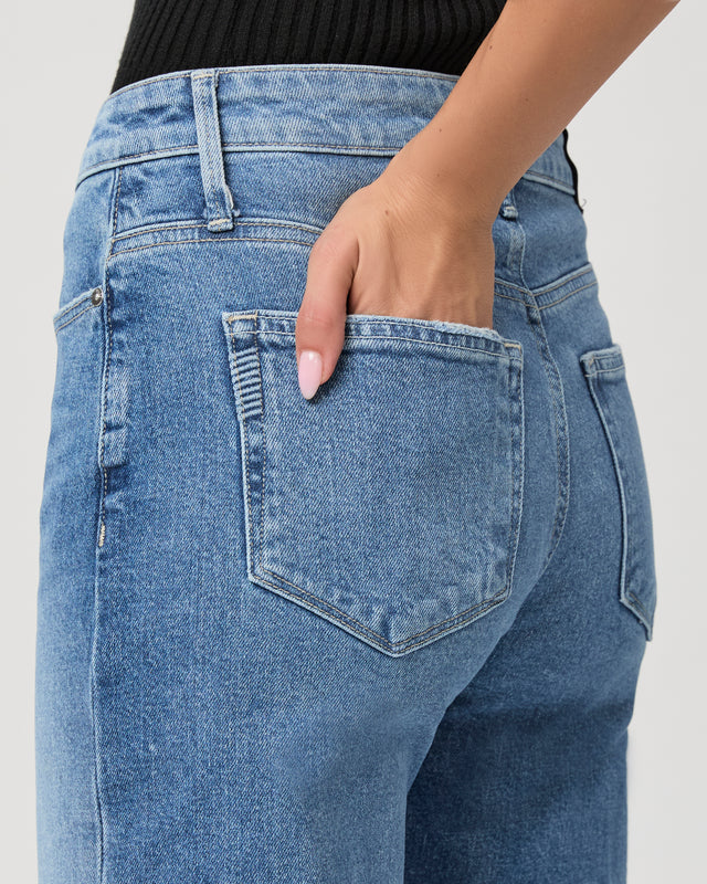 This sleek wide leg is designed with a high-rise, a flattering bow leg and an easy ankle length inseam that can be paired with any shoe heel height. This must-have pair is crafted from our customer-favorite PAIGE VINTAGE denim in a classic light wash with vintage-inspired details and a raw hem. PAIGE VINTAGE takes all of the work out of breaking in your favorite pair of vintage jeans. We've combined the comfort of stretch with everything you love about authentic vintage denim to create super soft jeans that feel perfectly lived-in from the very first wear.