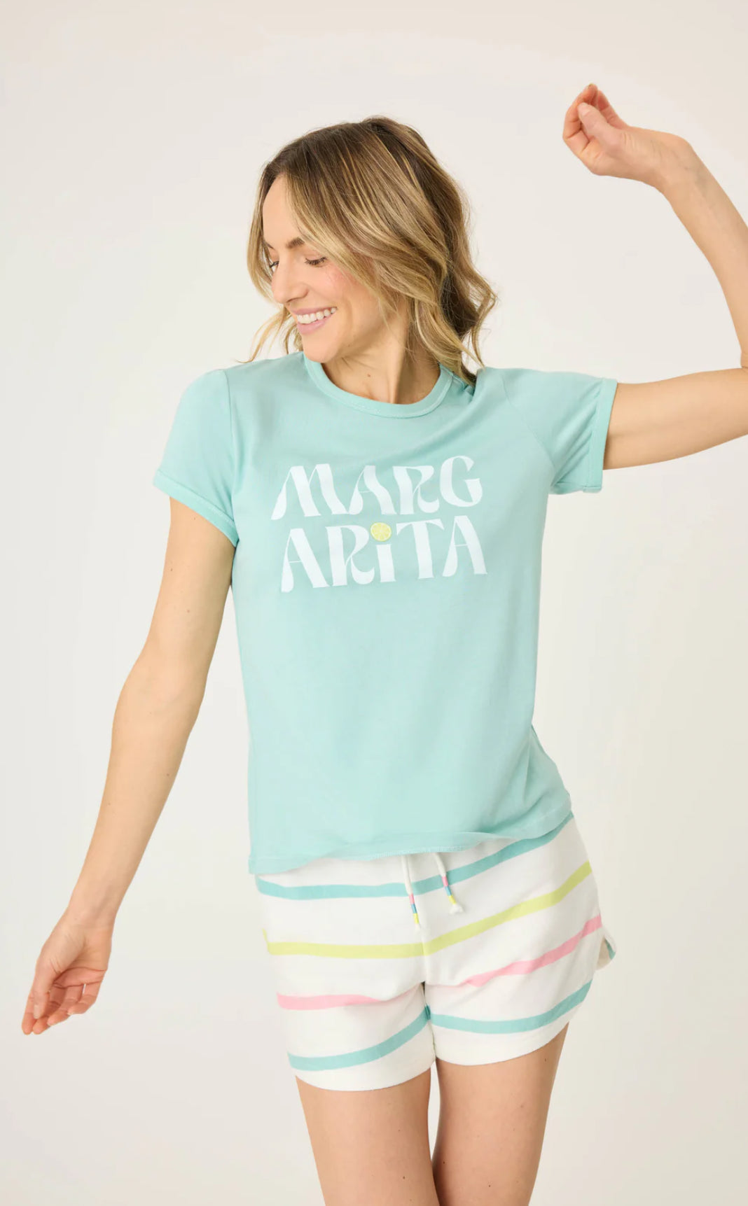 Shaken, stirred, or worn on repeat. This margarita graphic tee is a toast to easygoing style, crafted from a soft cotton-modal blend in a breezy seafoam hue. With a relaxed crewneck fit, it’s perfect for pairing with striped lounge shorts, denim cutoffs, or whatever makes you feel like you're on vacation.
