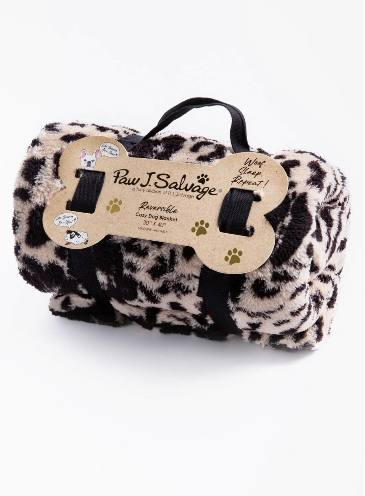 DESCRIPTION: Does your family pup love to snuggle up? Meet the world's softest, coziest, reversible dog blanket. This is a perfect companion for naptime or sitting at your side. Neutral heathered charcoal reverses to dark grey back. Rolled in a giftable carry strap. One size (30" x 40")