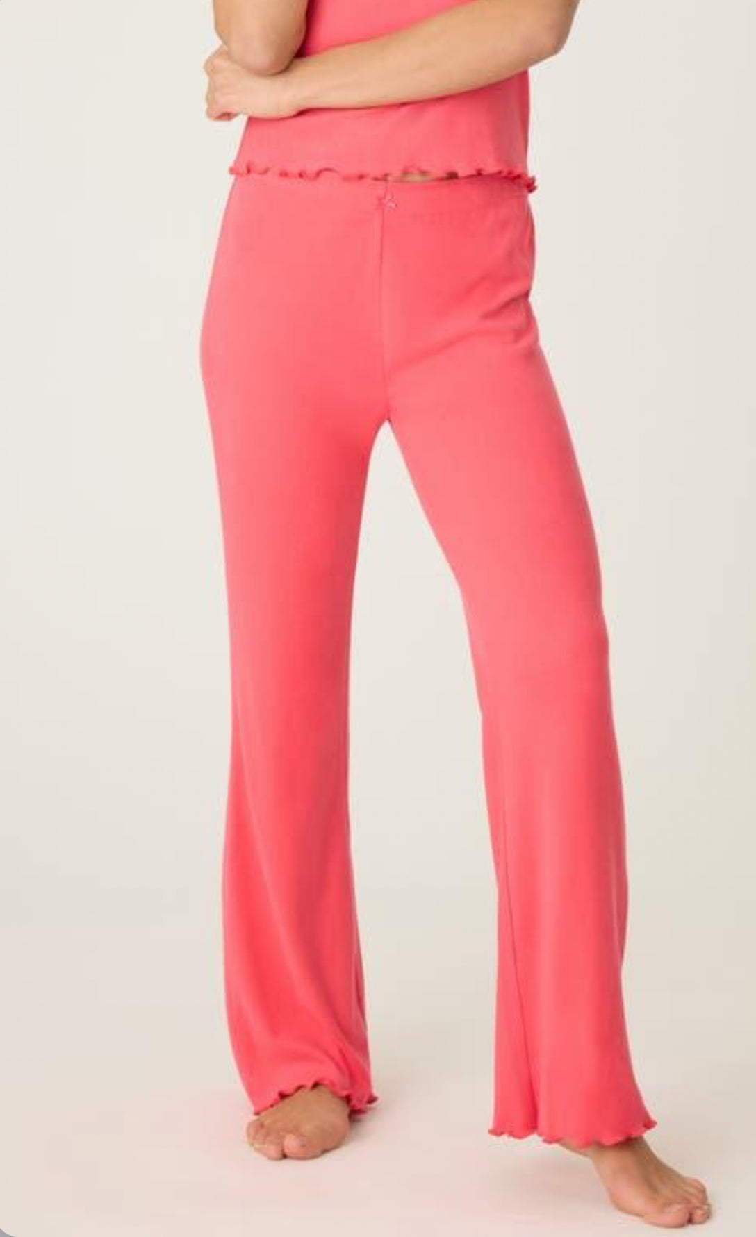 As sweet as a tropical punch, this brushed pointelle camisole and pants brings a little paradise to your pajama drawer. Dipped in a vibrant raspberry hue with a delicate lace-trimmed neckline, it's both soft and feminine, with adjustable straps and a built-in shelf bra to keep things easy. Perfect for lounging, layering, or daydreaming of island breezes.