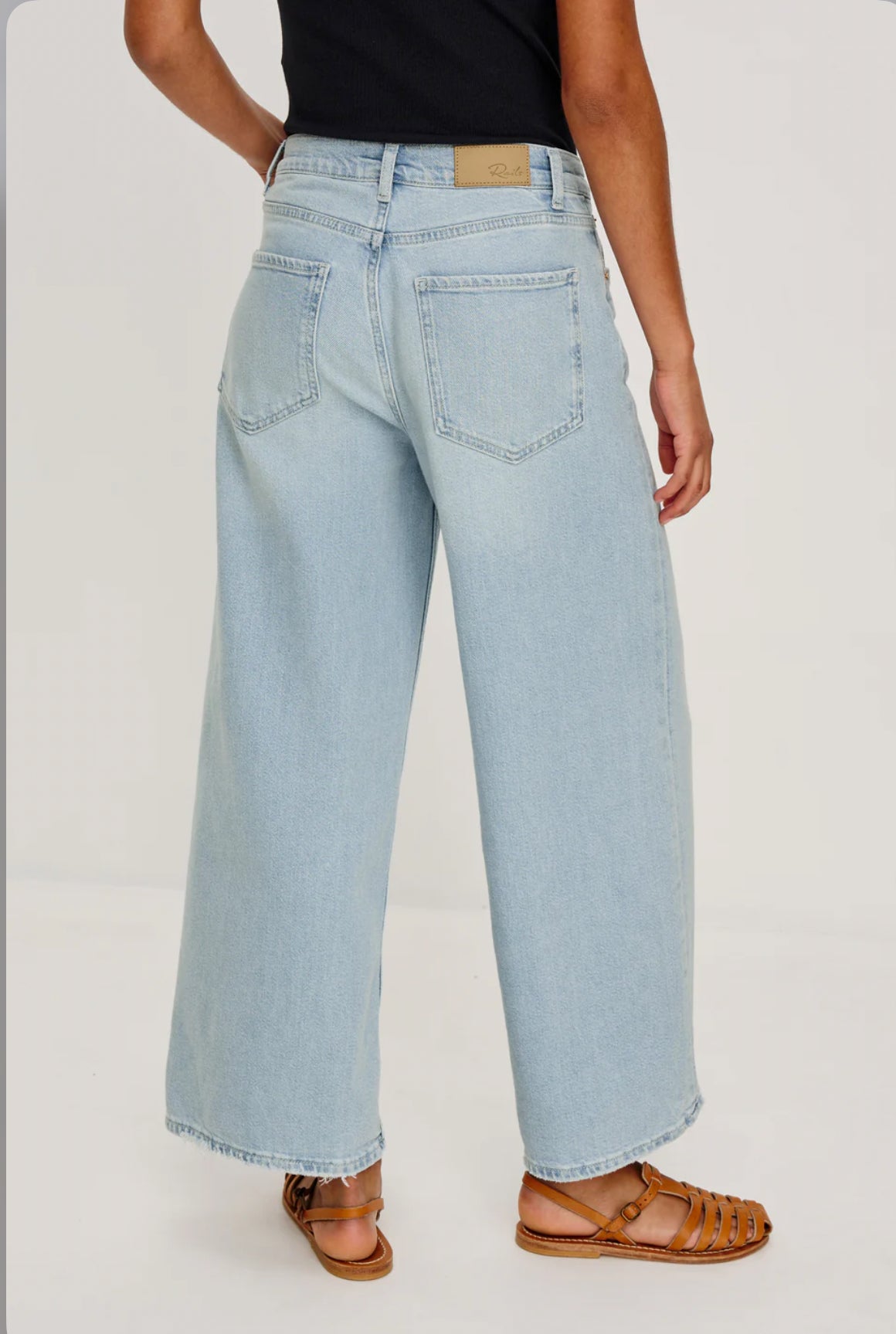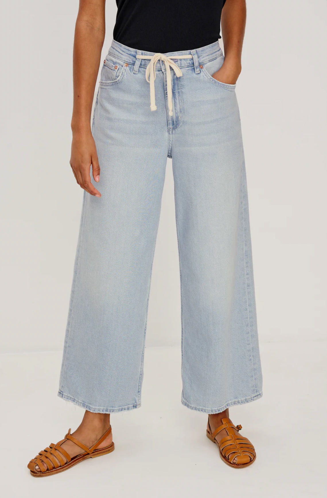 The wide-leg, mid-rise Angeleno—now in a cropped cut. This effortless denim takes cues from California culture in the 90s, complete with an adjustable shoelace-style drawstring at the waist.