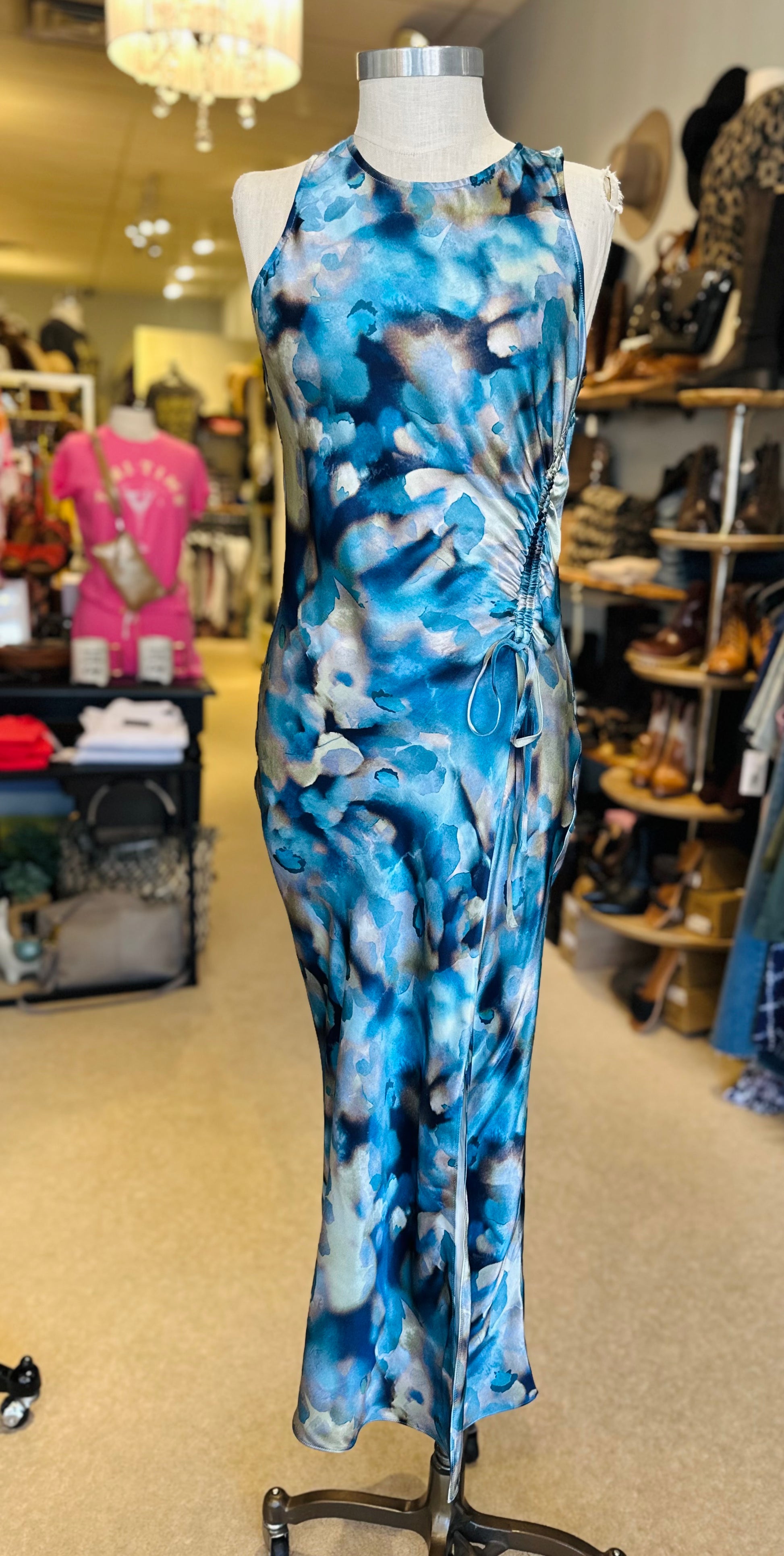 The Gabriella is a slip dress, but better—crafted from a textured satin that skims the silhouette without clinging and falls at a midi length. Flattering finishing touches include a side slit and ruched drawstring.