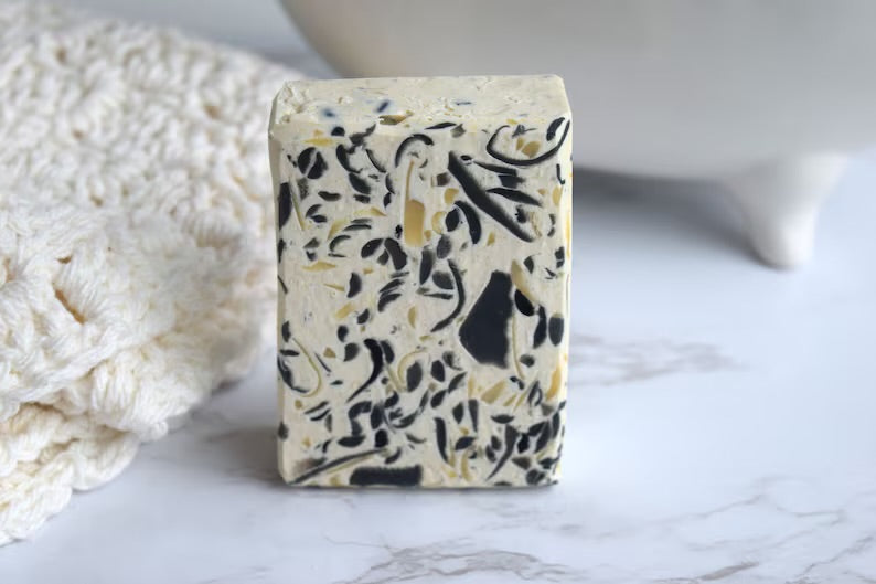 Bergamot + Black Tea Goat Milk Soap, fresh citrus type scent, handmade soaps, gifts birthday gift, pretty soap, terrazo