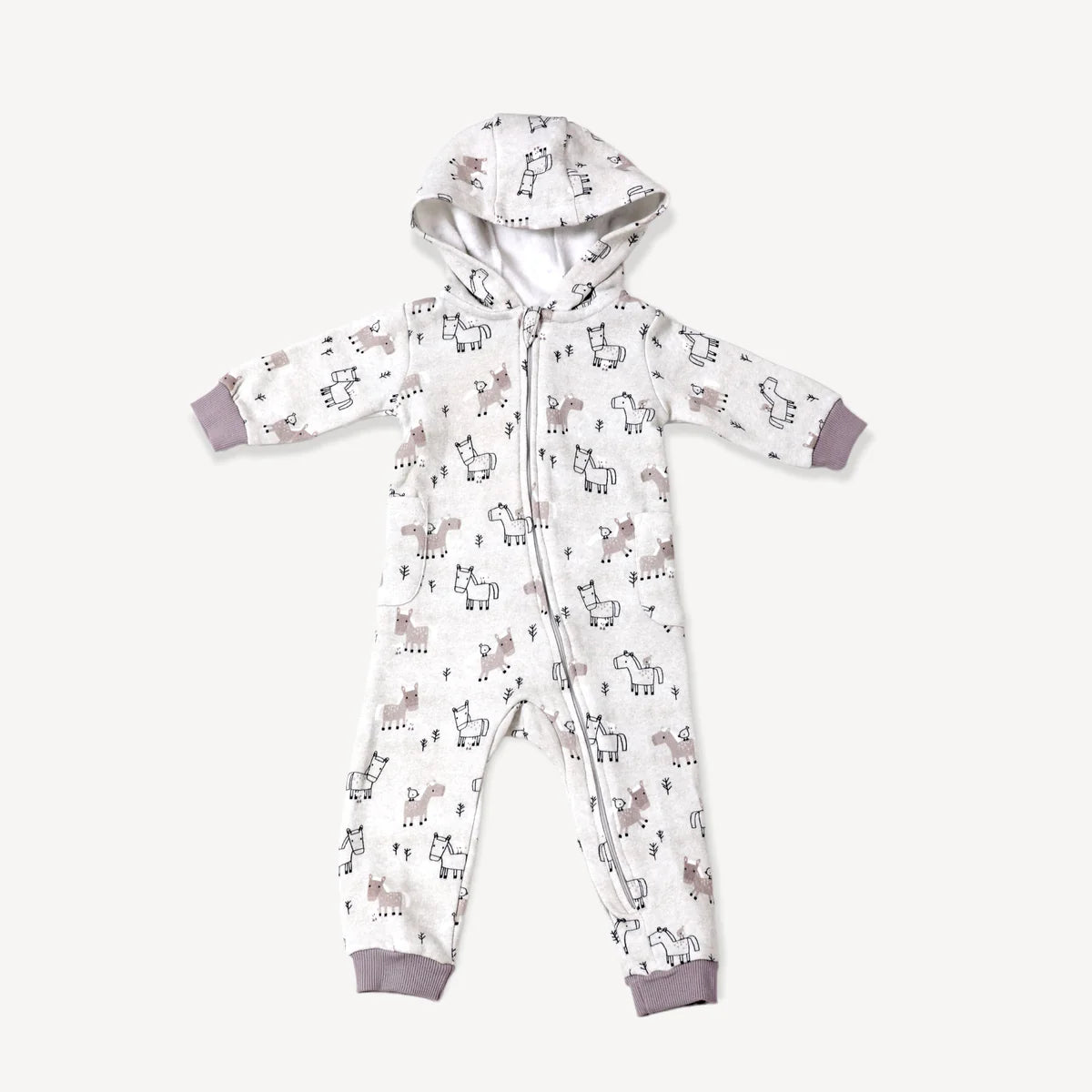 Viverano Organics Horse And Bird Fleece Hooded Jumpsuit