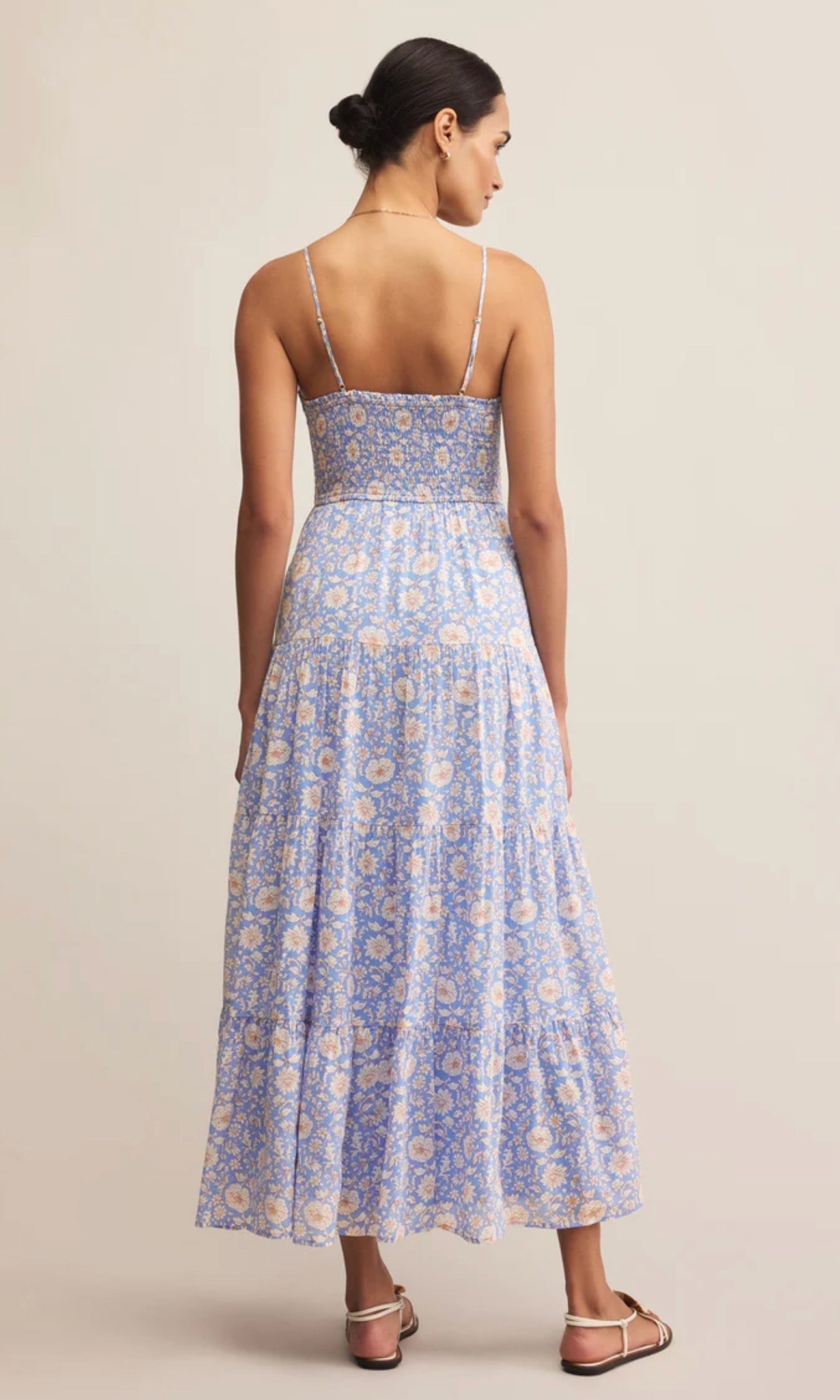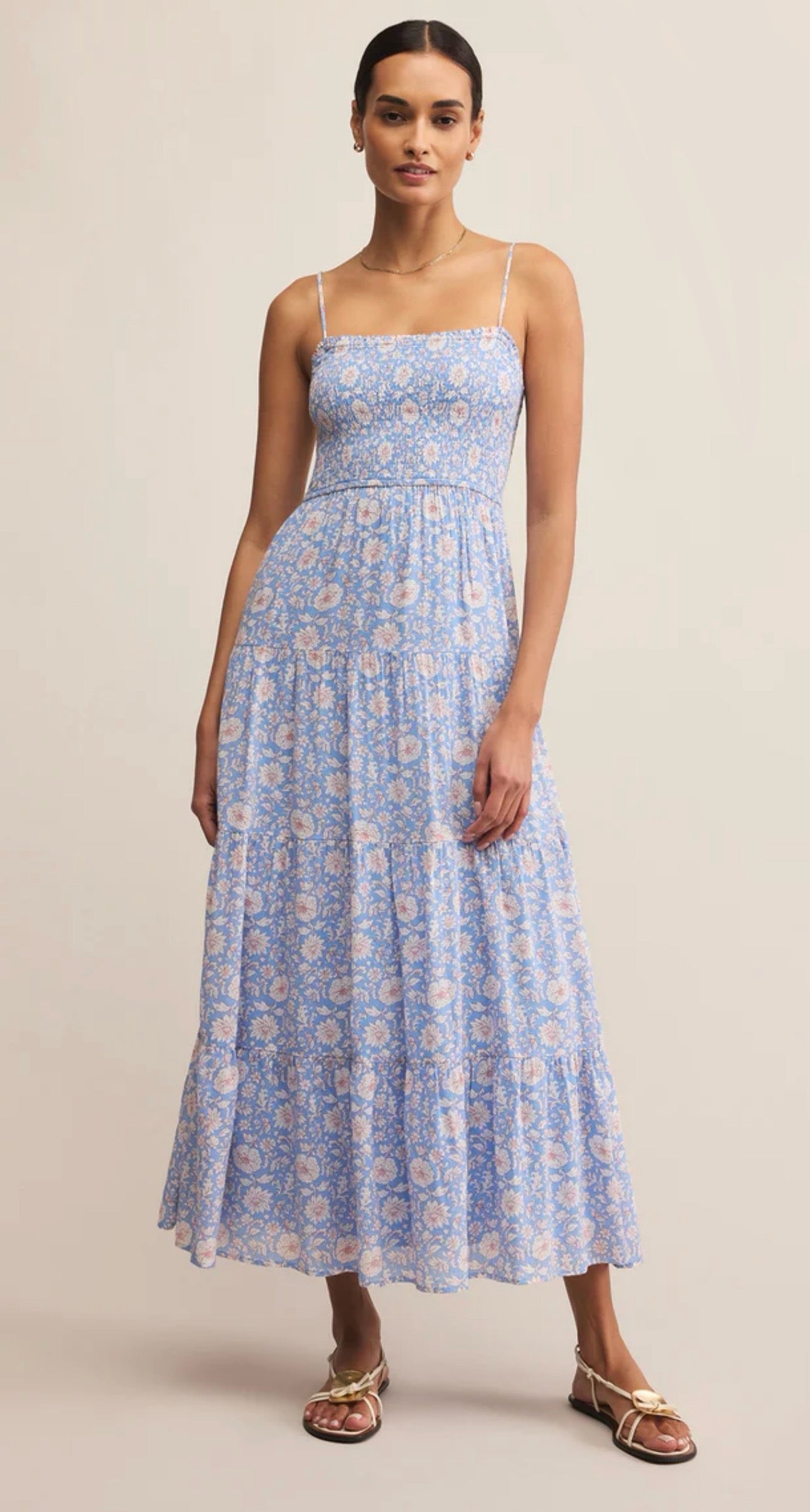 This breezy floral midi dress will have you flowing through your day in satiny textured voile. We can't decided which flattering details we love best; the square neckline, smocked bodice, or the flowy, tiered skirt.