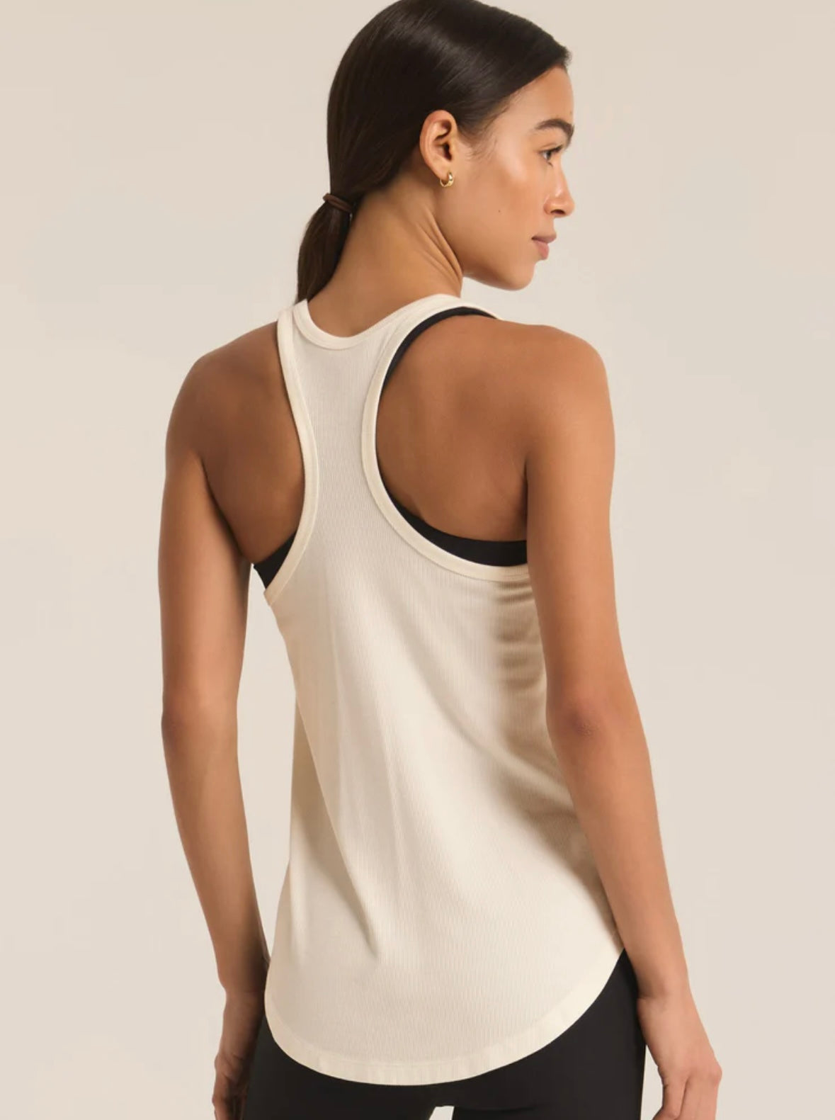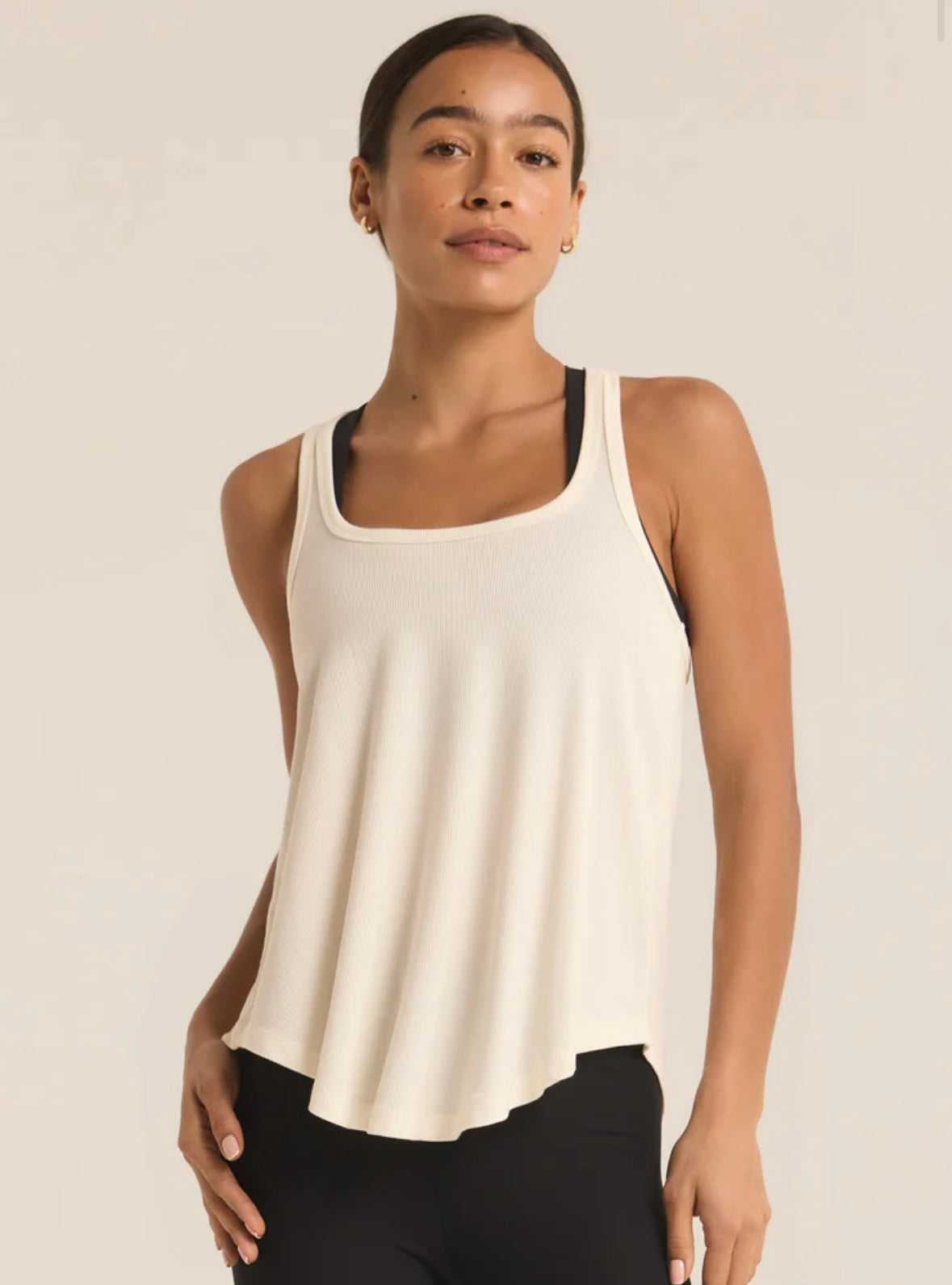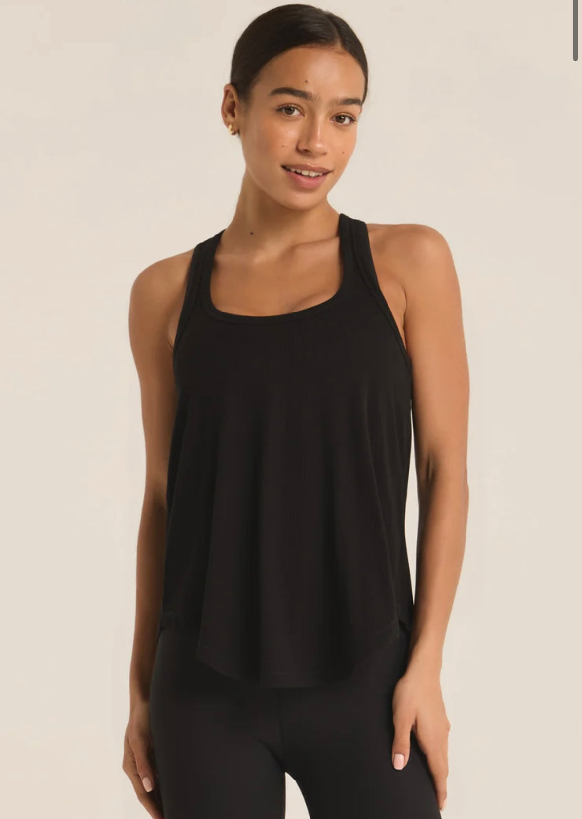 Meet your new favorite activewear tank: a relaxed racerback with a scoop neck and a flattering curved hem, perfect for any casual day out. Its laid-back style and comfortable, flowy fit make it a must-have addition to your wardrobe.