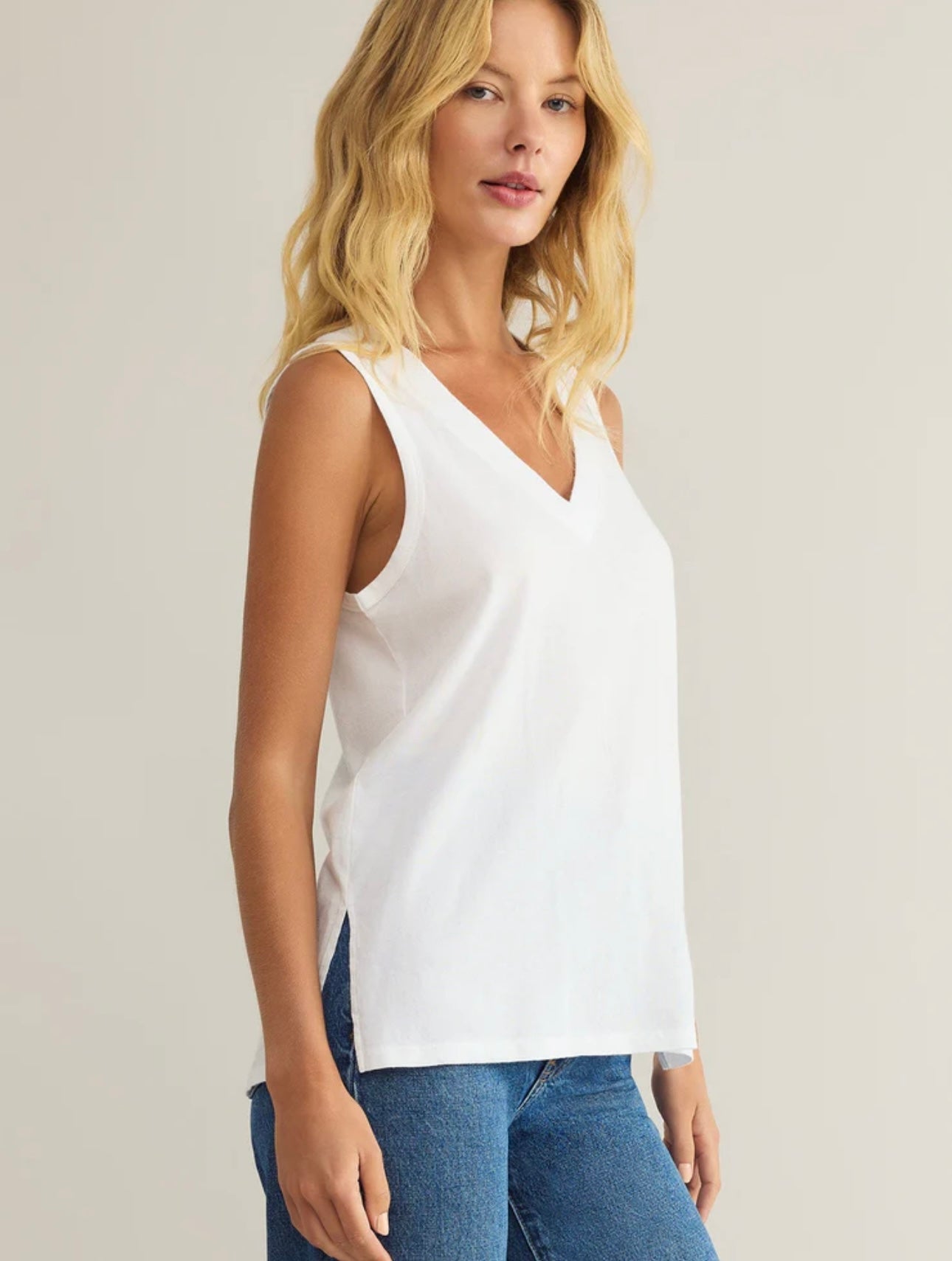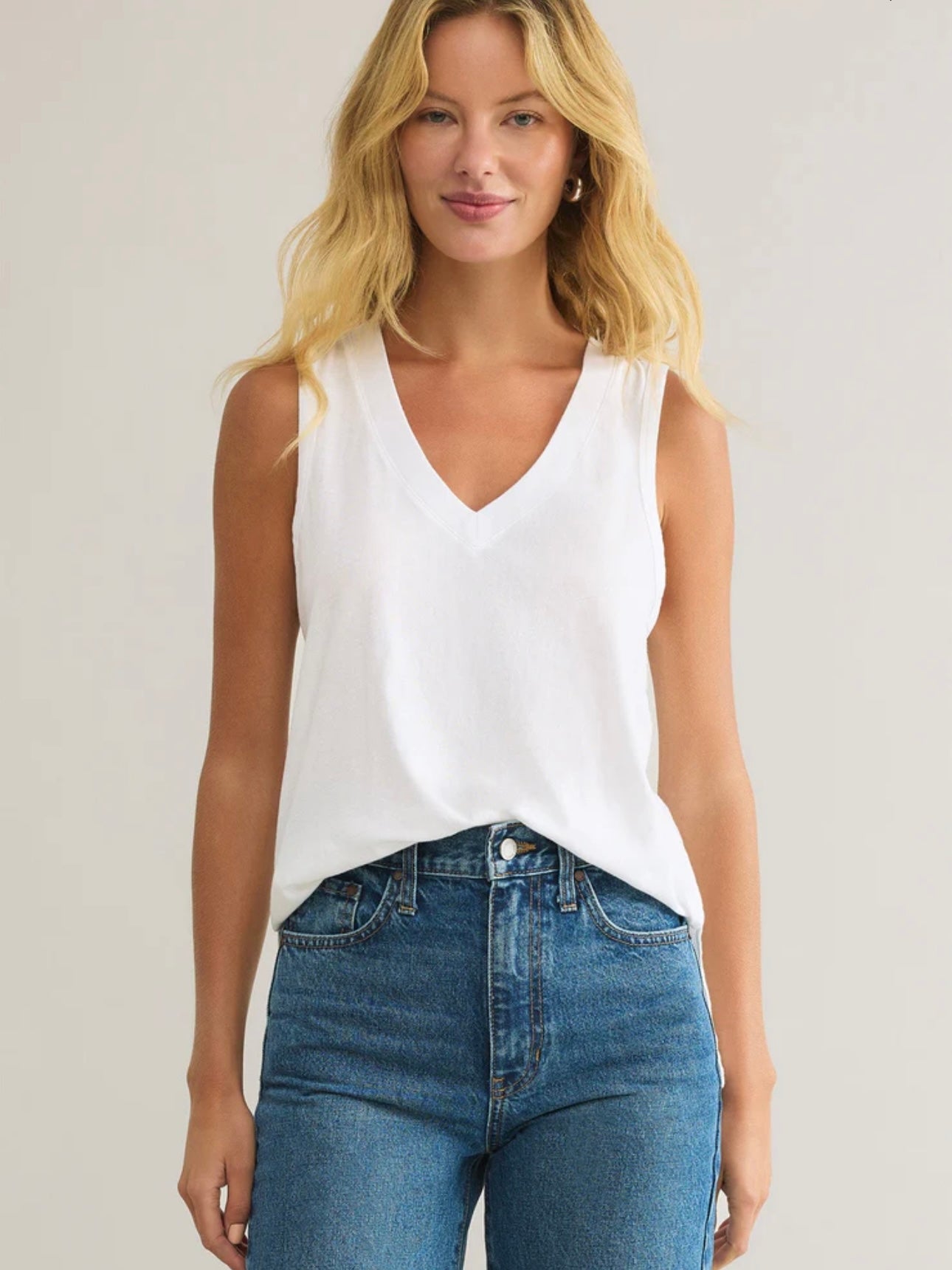 This lightweight cotton jersey v-neck tank is bra-friendly and has an easy, relaxed vibe. Whether you pair it with jeans or layer it under a cardigan, it’s the kind of top that just works with everything.